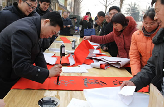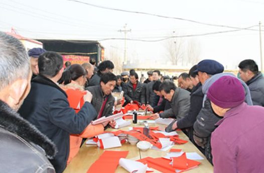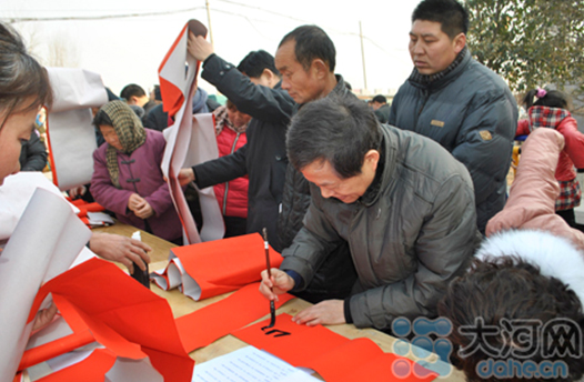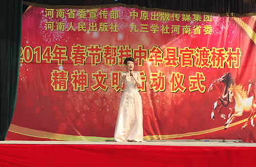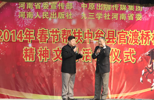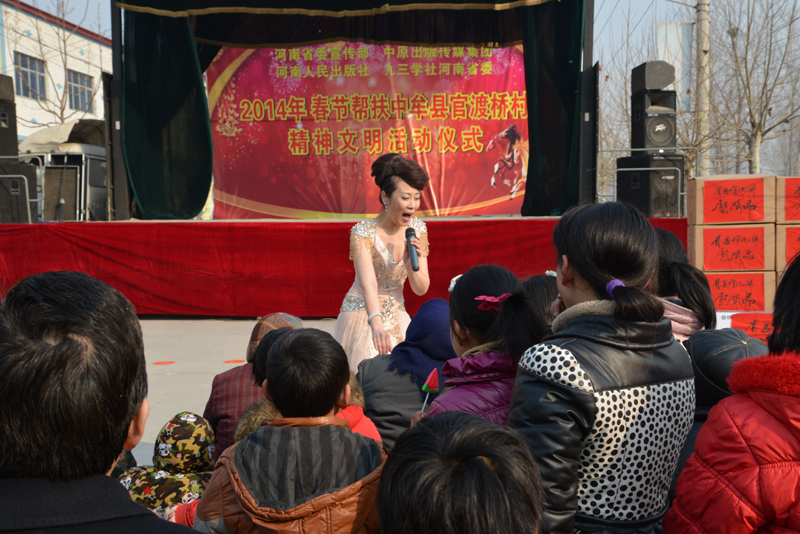 省委宣傳部副巡視員杜瑞明代表省直四家單位講了話,向官渡橋村村民送上節(jié)日的祝福。隨后,慰問團的領(lǐng)導(dǎo)向官渡橋村農(nóng)民群眾和小學(xué)生贈送了文體用品。由省委宣傳部邀請的薛青、郝曉冬等省內(nèi)多位知名演員為村民們表演了歌舞《田野里的春天》、豫劇《朝陽溝》選段、相聲《大腕研究》、嗩吶《百鳥朝鳳》等七個精彩的節(jié)目。在近兩個小時的演出中,臺上演員們精彩的表演,博得群眾的陣陣掌聲。省委宣傳部機關(guān)黨委專職副書記李憲林、創(chuàng)建處處長張德偉揮毫潑墨,現(xiàn)場為鄉(xiāng)親們義寫春聯(lián)。省九三學(xué)社邀請的省醫(yī)療專家為鄉(xiāng)親們傳播健康衛(wèi)生知識,現(xiàn)場檢查治療。中原出版集團和河南人民出版社為鄉(xiāng)親們贈送了科技圖書讓大家過春節(jié)時學(xué)習(xí),整個慰問活動場面熱烈,氛圍濃厚。
