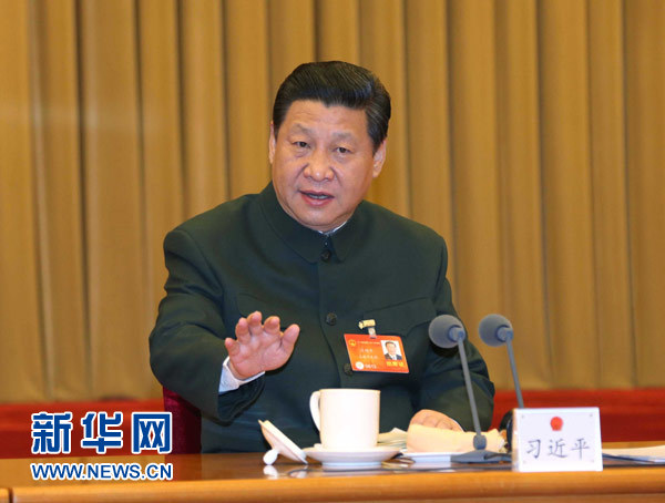 311日,中共中央總書記、國(guó)家主席、中央軍委主席習(xí)近平出席十二屆全國(guó)人大二次會(huì)議解放軍代表團(tuán)全體會(huì)議并發(fā)表重要講話。新華社記者李剛攝