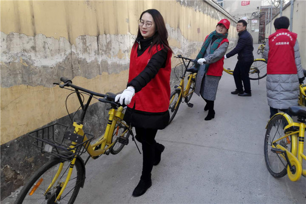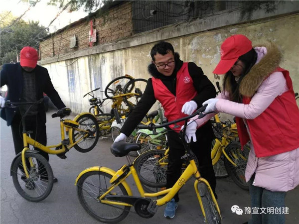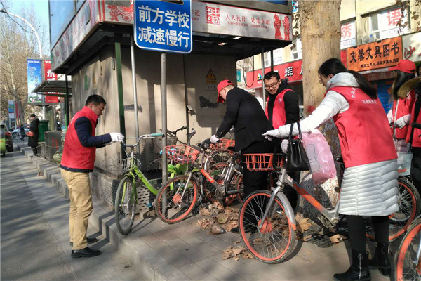 志愿者們冒著寒風(fēng)和低溫,清理家屬院里違規(guī)停放小黃車,并引導(dǎo)社區(qū)居民講文明、樹新風(fēng),養(yǎng)成良好的行為習(xí)慣。經(jīng)過一個(gè)多小時(shí)的勞動(dòng),雖然手都凍紅了,但看到近百輛擺放的整整齊齊的單車和井然有序的院子,大家都有滿滿的成就感,也體會到了奉獻(xiàn)的快樂。