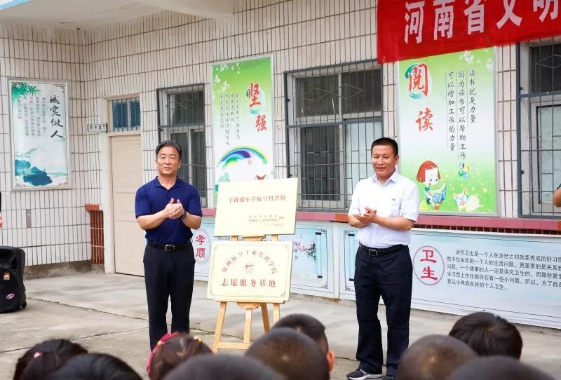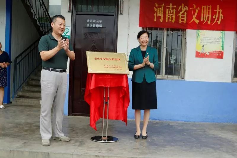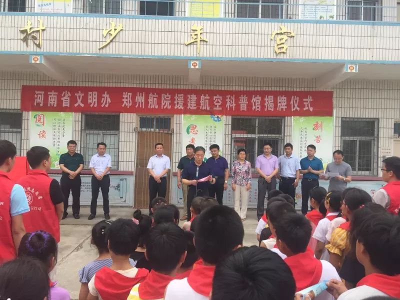 7月11日,河南省委宣傳部常務(wù)副部長蘇長青、副部長張曼如、省文明辦專職副主任王飛等同志帶領(lǐng)部機(jī)關(guān)有關(guān)人員,與鄭州航空管理學(xué)院有關(guān)領(lǐng)導(dǎo)和志愿者師生一行,分別到省委宣傳部幫扶貧困村周口市西華縣半截樓村和漯河市舞陽縣余莊村,為省文明辦、鄭州航院援建的航空科普館和鄭州航院志愿服務(wù)基地舉行揭牌儀式。